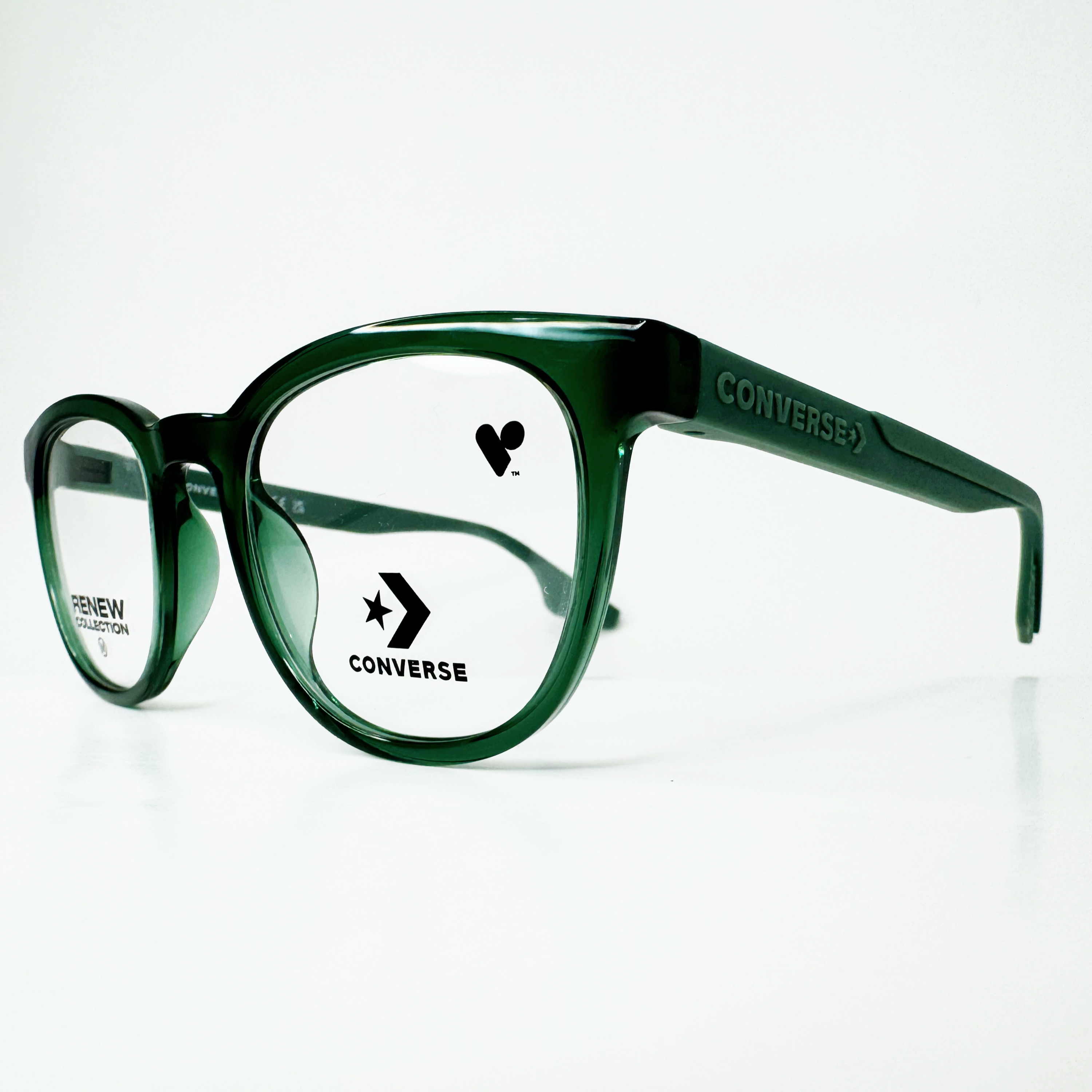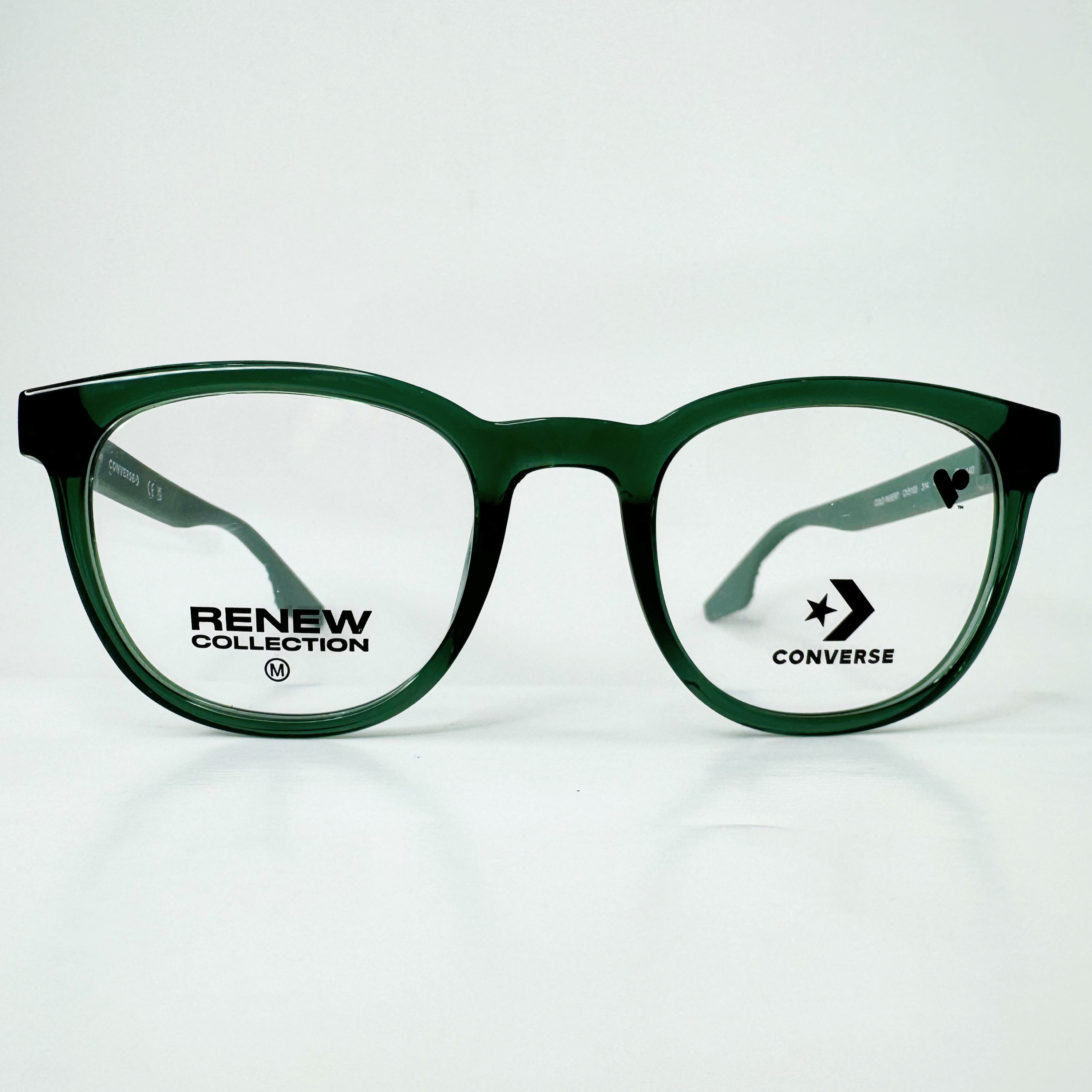 Oprawki Converse CV5103 314 w kolorze Crystal Admiral Elm to unisexowe, przezroczyste okulary o okrągłym kształcie i pełnej ramce, łączące nowoczesny design z komfortem noszenia.